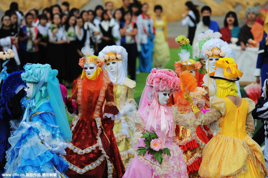 组图:中学生运动会脑洞大开 扮自由女神
