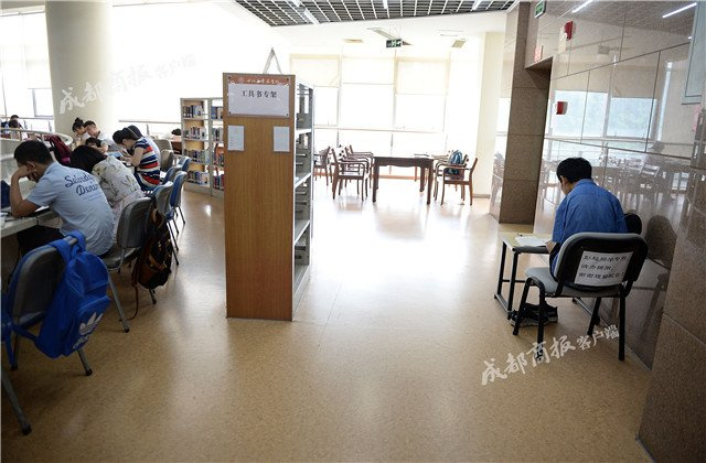 彭超在他的图书馆专属座位上看书。